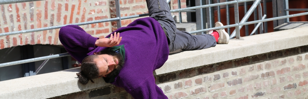 Vêtus de leurs grands manteaux , cinq hommes sans tête hantent la Manufacture des Flandres à la recherche de leurs histoires. Présences fantomatiques, ils racontent le corps au travail, communiquent avec les machines du musée et se mettent en mouvement au grès de leurs sons.